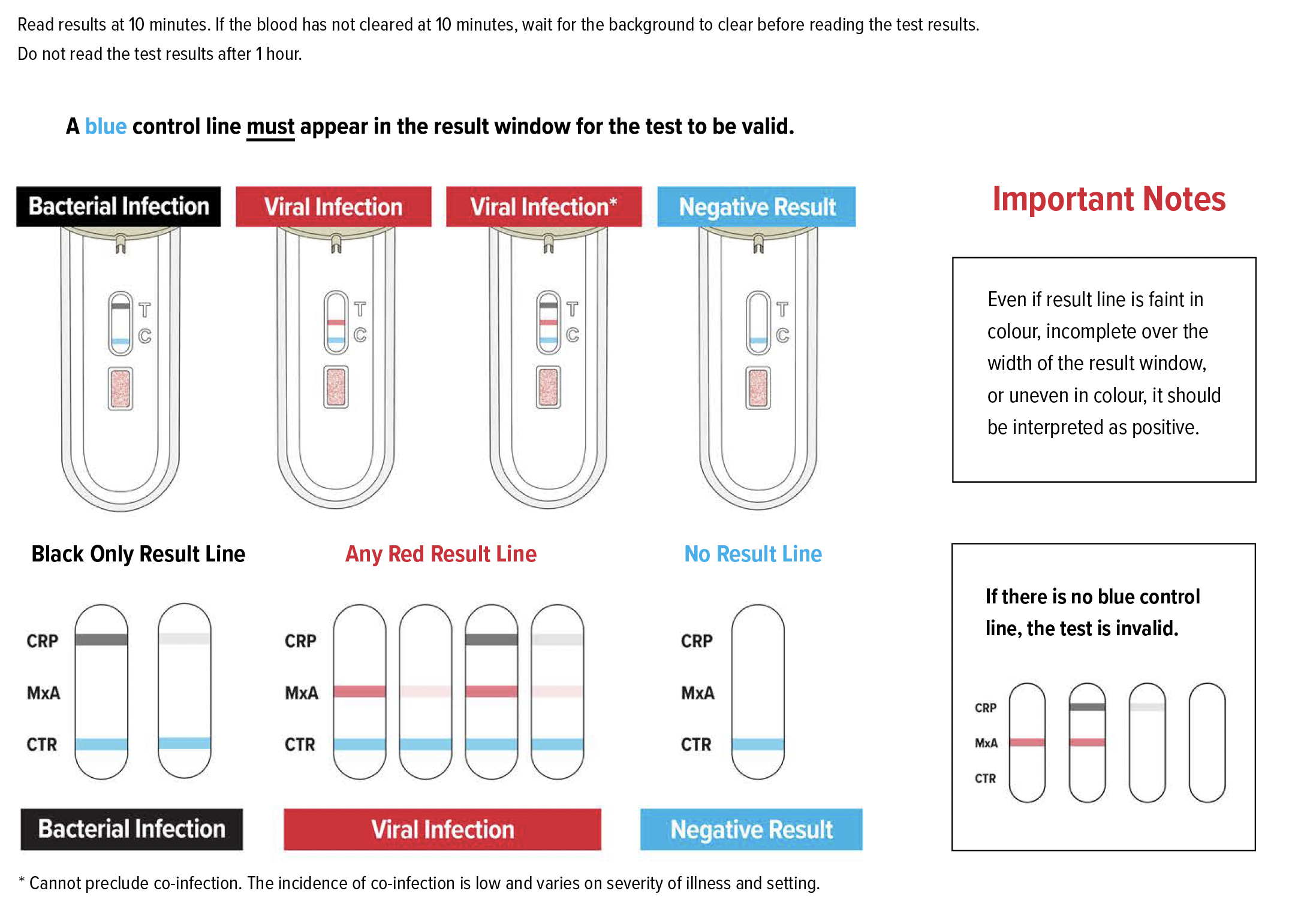 Neither MxA nor CRP alone is sensitive or specific enough to differentiate bacterial infection from non-bacterial etiology.4,6,9,10 At a low-level cut off, 20mg/L, CRP is very sensitive but non-specific at confirming bacterial infection. At a high-level cut off; 80-100mg/L, the reverse is true.3,9